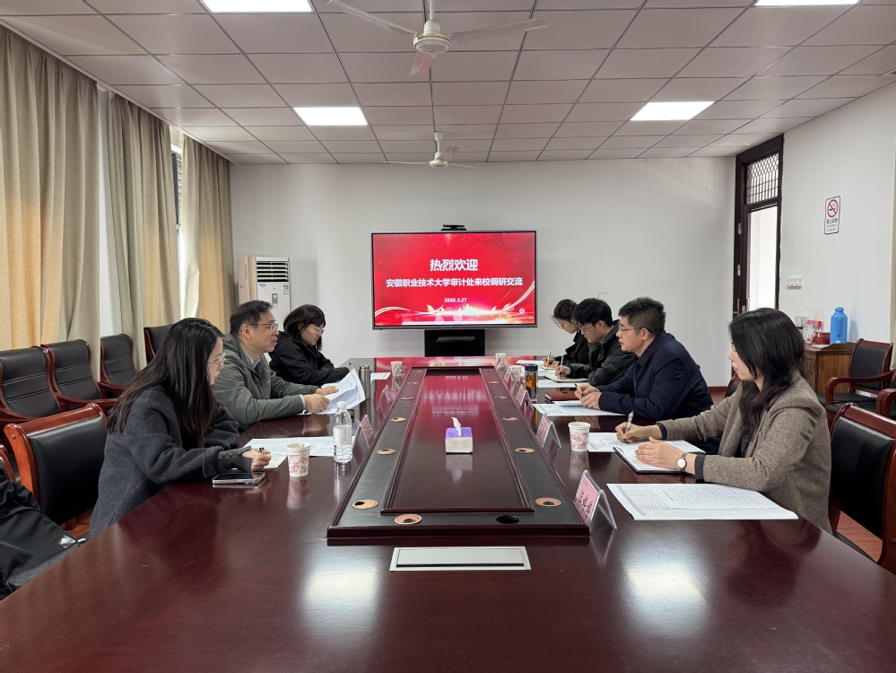 为进一步深化高校内部审计工作交流,破解审计工作难点堵点,推动内部审计工作高质量发展,3月27日上午,安徽职业技术大学审计处处长汪邦海一行3人莅临我校,就高校内部审计工作进行专题调研,我校审计处处长吴海澜及全体审计工作人员参加座谈交流。